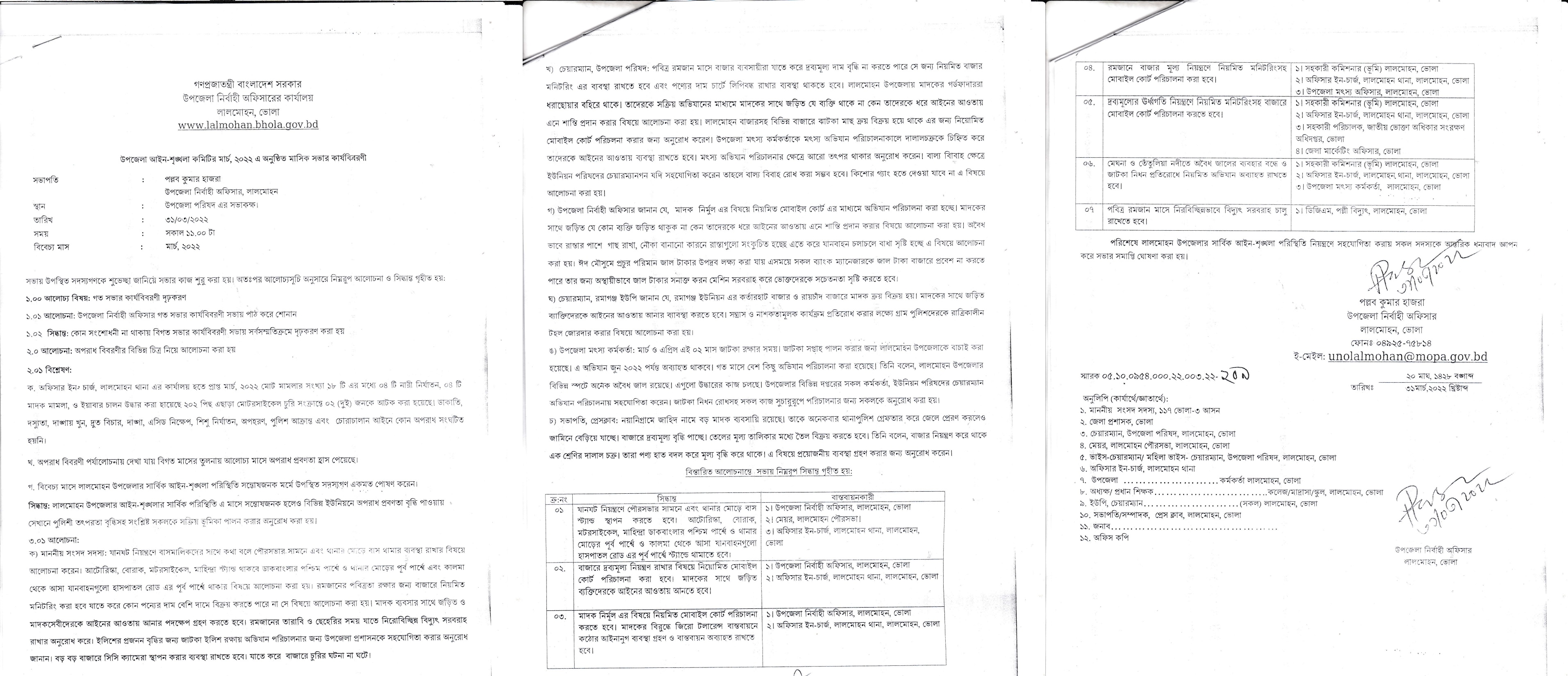 উপজেলা কমিটির সভার রেজুলেশন